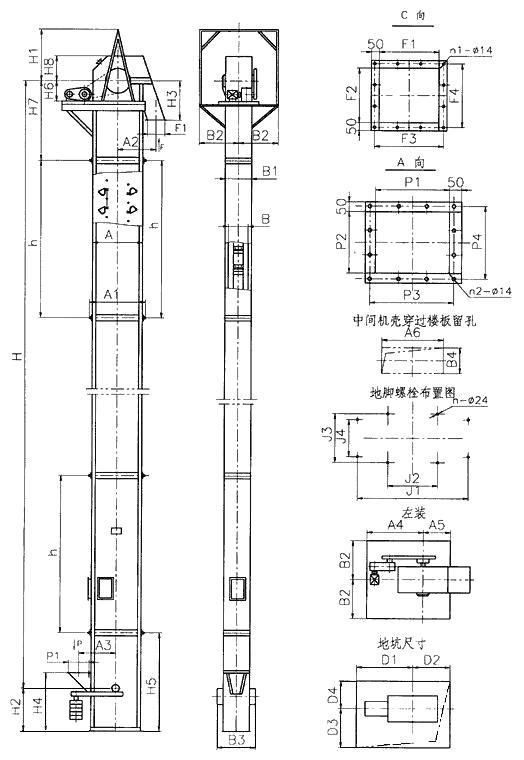 TD型D型斗式提升機適用于垂直輸送松散密度1.5t/m3粉狀、粒狀、及小塊狀的磨吸性較小的散狀物料,如糧食、煤、水泥、碎礦石等,提升高度 高,物料溫度不超過60℃.